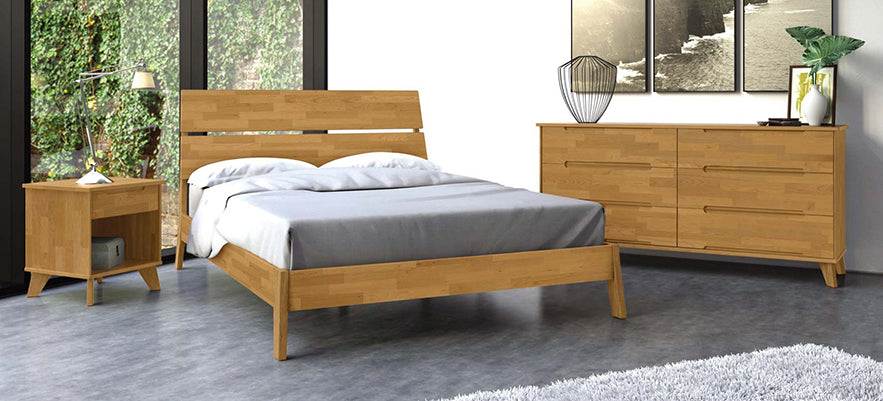 Stunning mid-century modern style and an upcycled black walnut, cherry or sustainably harvested oak construction make the exclusive Linn Bedroom a must have for any fast-paced modern home.