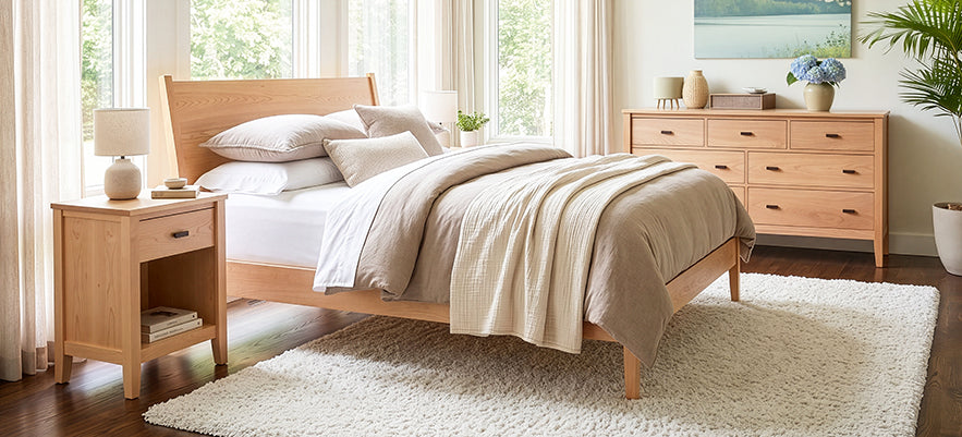 Our maple wood bed frames are handcrafted in Vermont with real, solid, locally-sourced maple. Qualifying orders ship free!