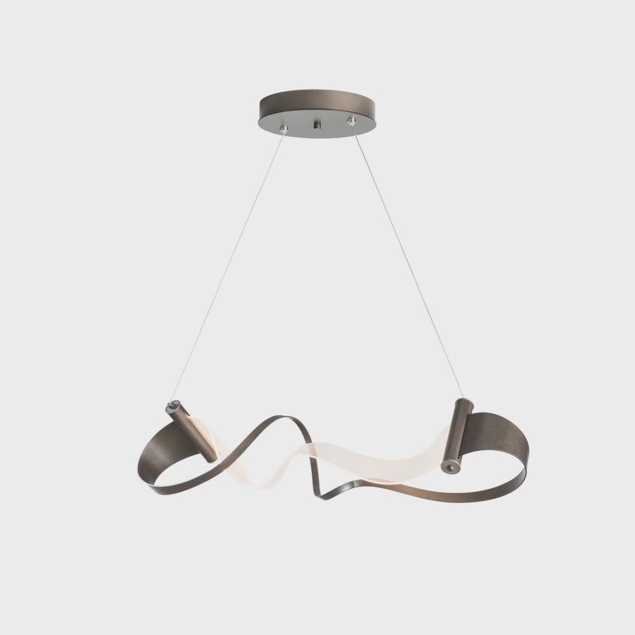 A continuous ribbon of hand-forged iron which morphs into a light guide and back again illustrates an elegant flowing form in the Zephyr LED Pendant by Hubbardton Forge. This pendant shows that the relationship between two opposing elements can come together to form one singular entity that illuminates your surroundings like no other. Beauty truly is in the details of the Zephyr design.